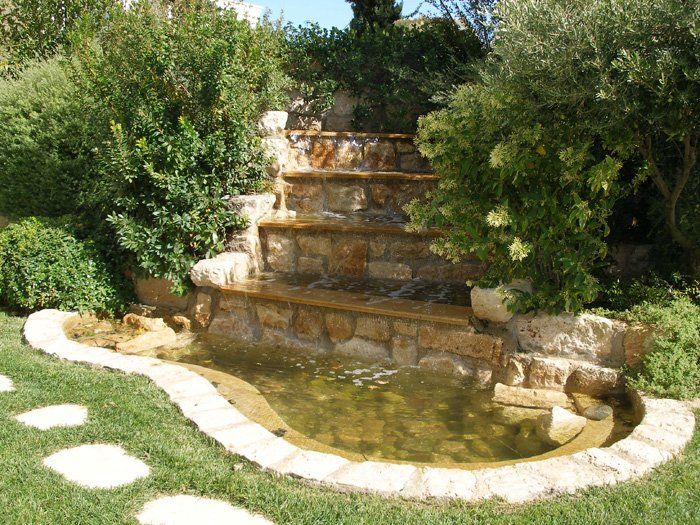 Το νερό με τα πλεονεκτήματά της αντανάκλασης, του ήχου και της κίνησης, δημιουργεί μια διαφορετική αίσθηση και διάσταση μέσα στον κήπο. Έχει την ικανότητα να χαλαρώνει και να ευχαριστεί. Σε κάθε μορφή κήπου (επιτηδευμένου ή μη, συμμετρικού ή ασύμμετρου) μπορούμε να ενσωματώσουμε υδάτινα στοιχεία, τα οποία συνδυάζονται άψογα με τον κατάλληλο φωτισμό, τα φυτά και τα αδρανή ή διακοσμητικά υλικά.